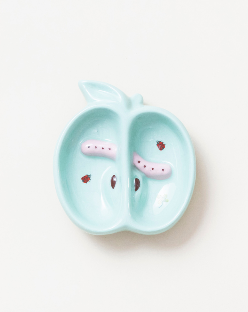 For afternoon snacks or holding little trinkets - you need this little green apple tray from Bitossi. Finished with 1 giant pink worm, 2 little ladybirds, and 1 four leaf clover.