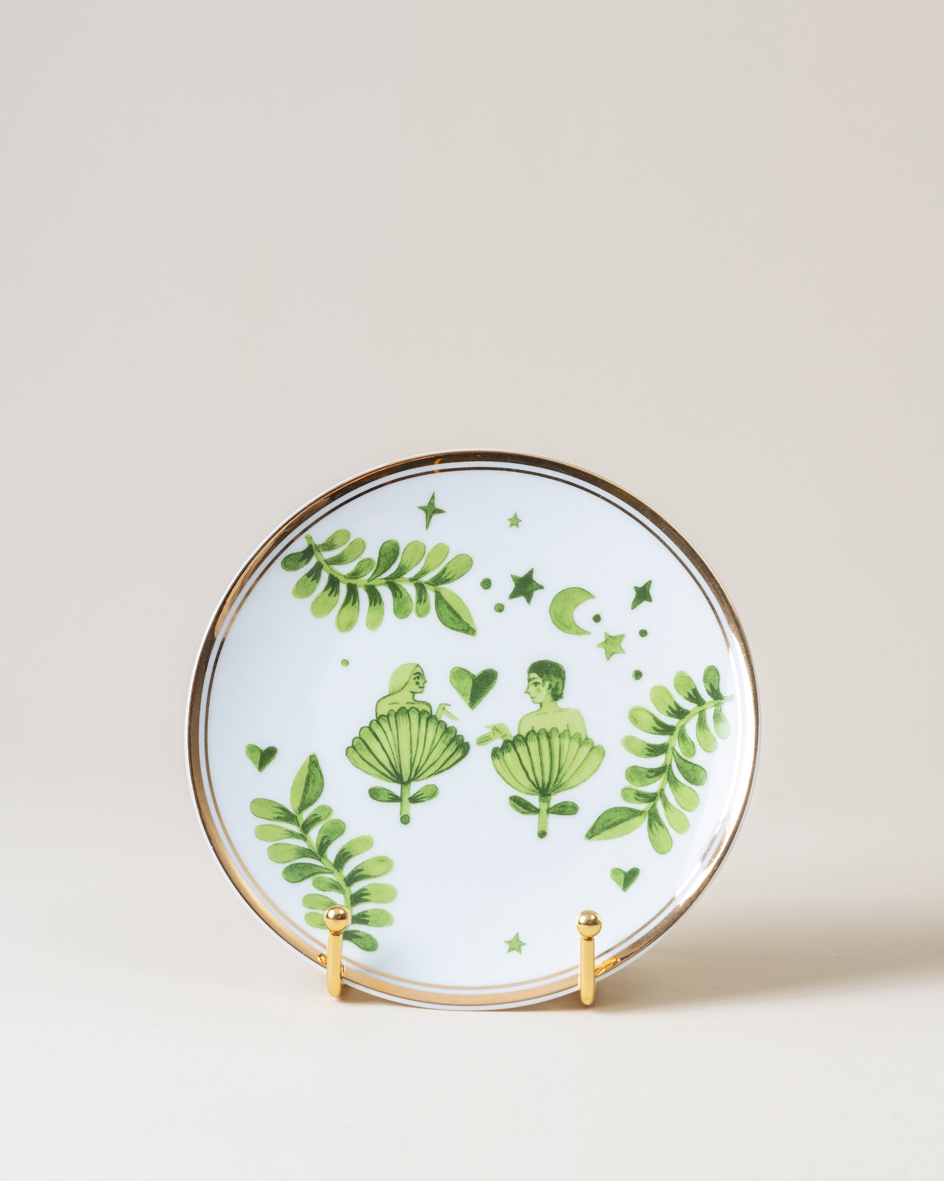 A plate from Bitossi for the one you love, or those you know are loved up! A beautiful white porcelain plate adorned with a man and a woman wrapped in leaves beneath the moon and stars. Finished with a gold rim. All that's missing is a nourishing and delicious lunch or dinner! Or just a slice of cake.