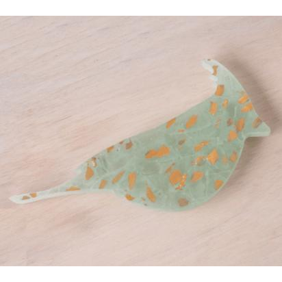 By re-melting our scrap glass into these cuties we are maintaining near-zero waste in our glass factory on the Pajaro River (means bird gathering place) of the Monterey Bay and keeping it out of the landfill. Flecked with 24k gold and a half-inch thick, no two are exactly alike. Patented. Not just for bird lovers!