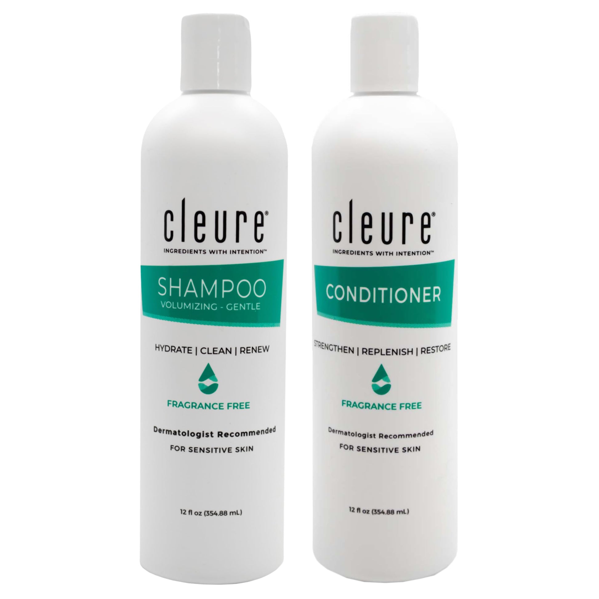 Cleure Hypoallergenic Volumizing Shampoo & Hydrating Conditioner Haircare Set for Sensitive Skin - Fragrance Free, SLS Free & Paraben Free (12 Oz Each, Pack of 2)