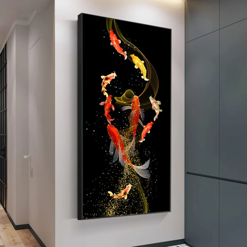 Color: Gold Black Color Fish Painting for Living Room Decoration