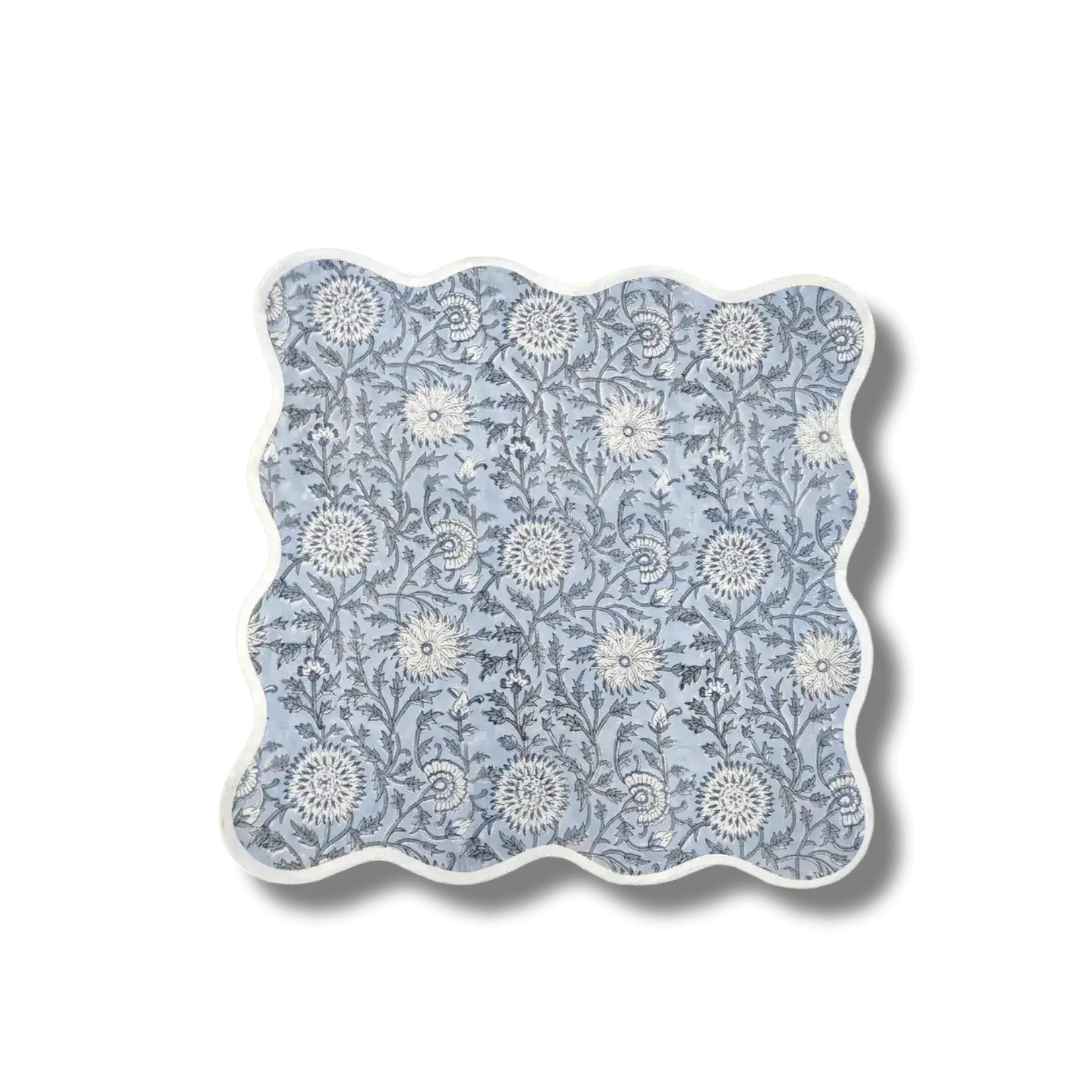 Hand Block Light Blue and Off White Scallop Cotton Napkins