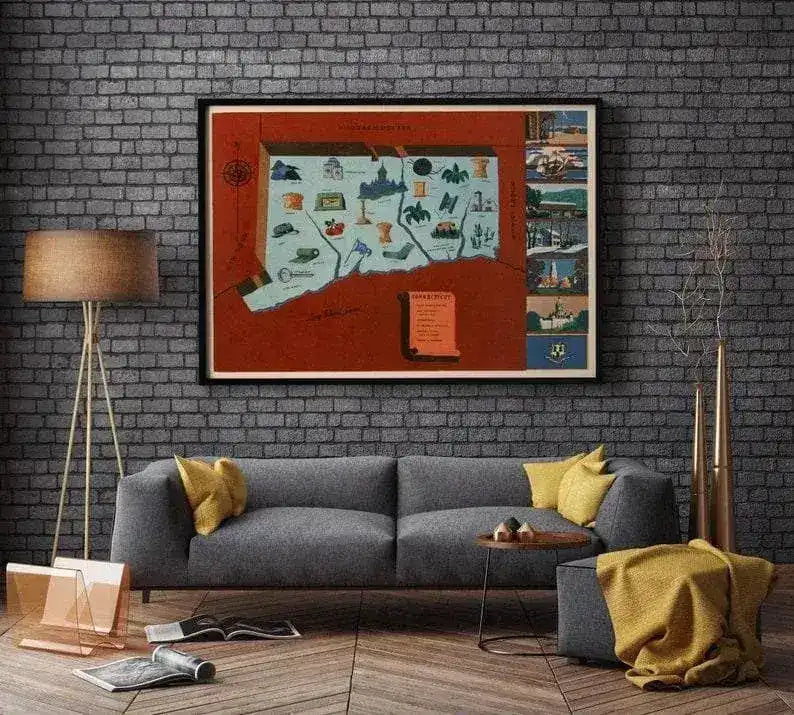 Historical Map of Connecticut| 1938 Connecticut Map Wall Print