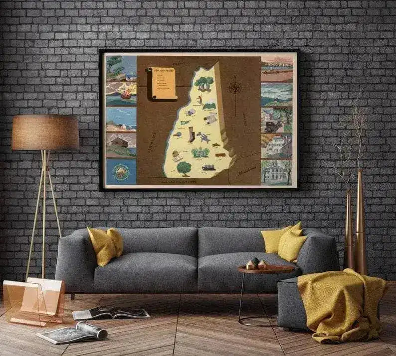 Historical Map of New Hampshire| 1938 New Hampshire Map Wall Print