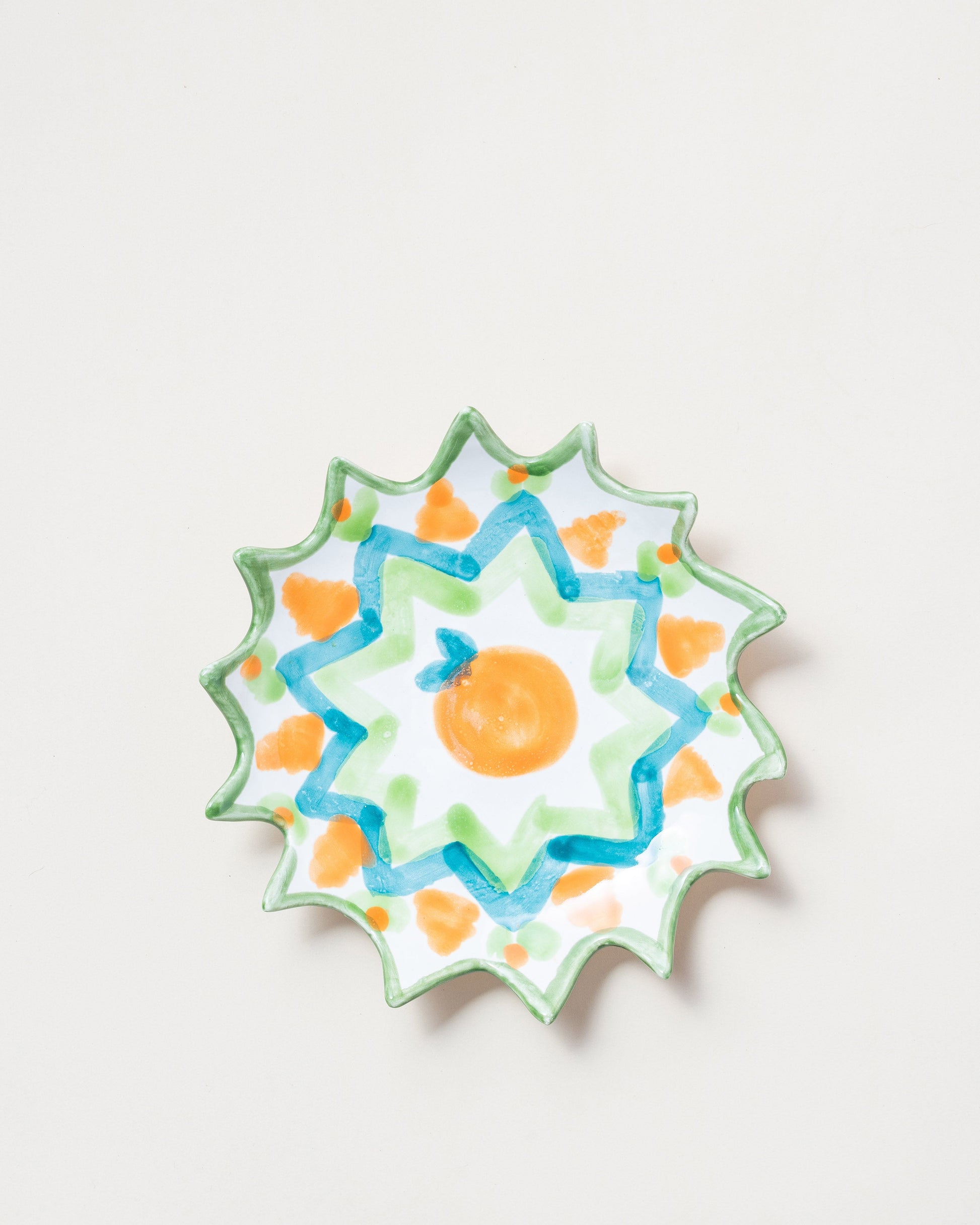Bring a touch of Italy to the table with this beautiful dessert plate by Patrizia Italiano adorned with a crown of softly painted oranges with their green leaves.