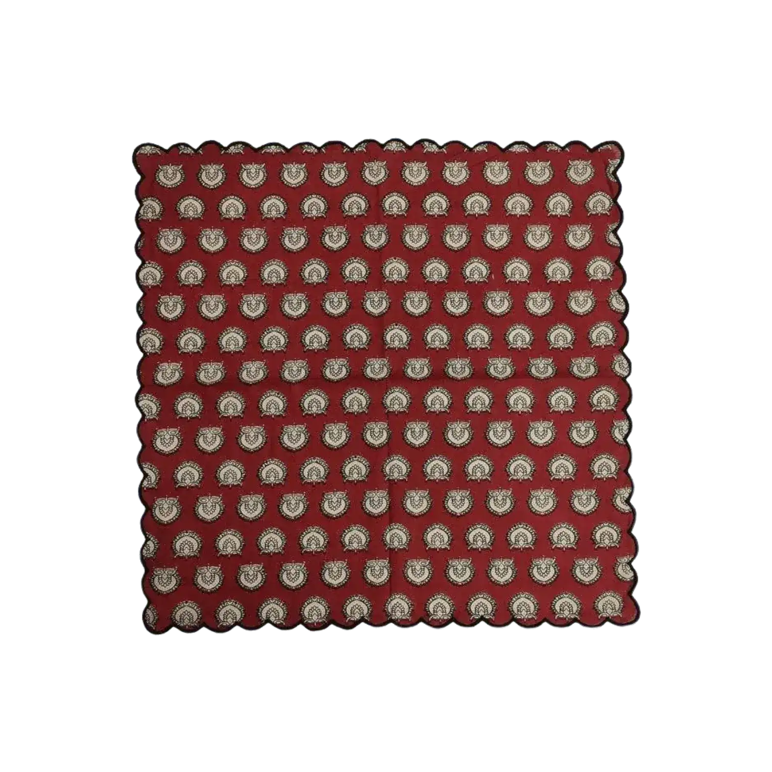 Red Block Printed Scalloped Cotton Napkins with Embroidered Trims