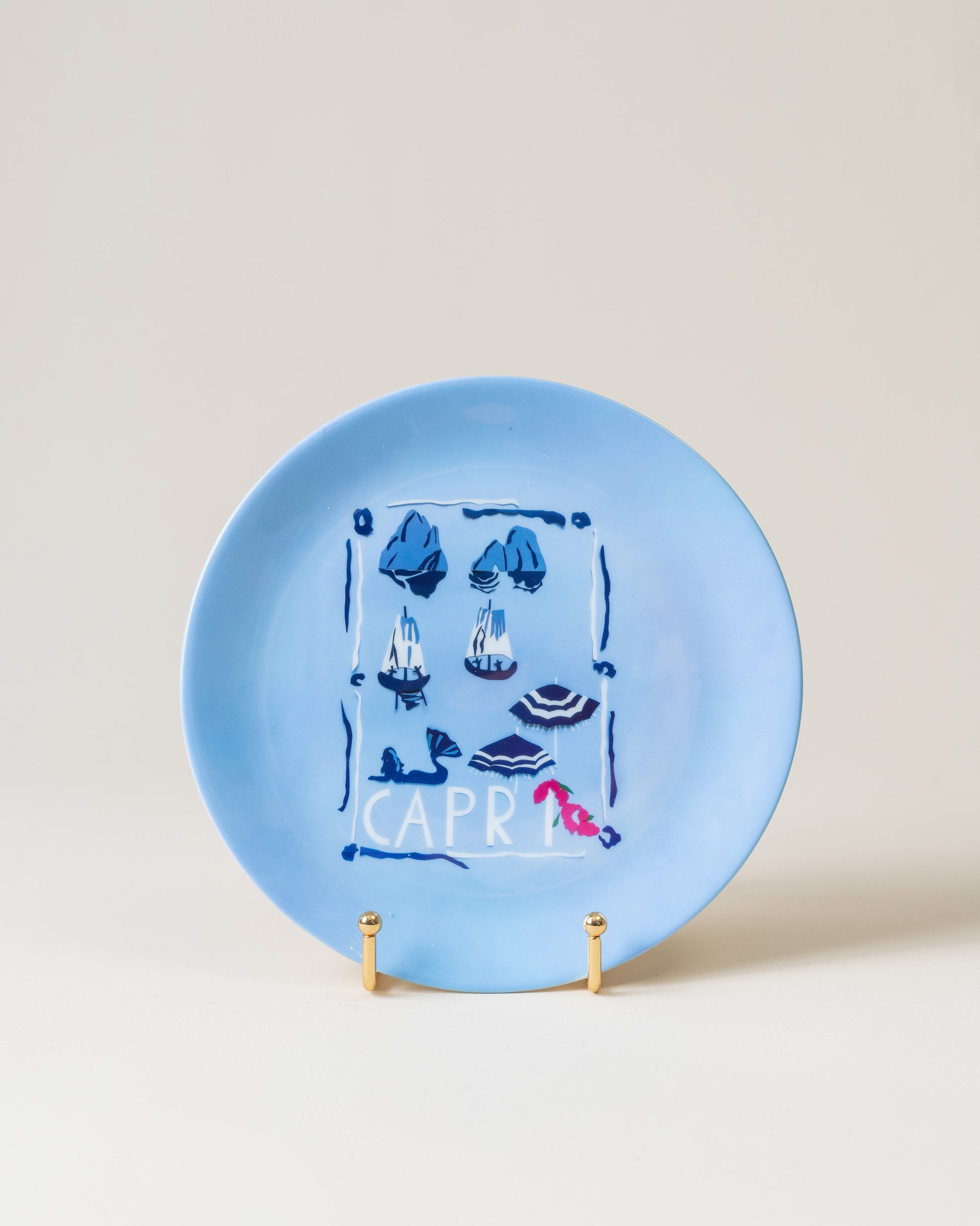 A beautiful reminder of summer days in Italy, this bright blue Capri dessert plate from Tata Naka is finished with beautiful sketches of sailing boats and parasols. Next question is, what's for dessert?