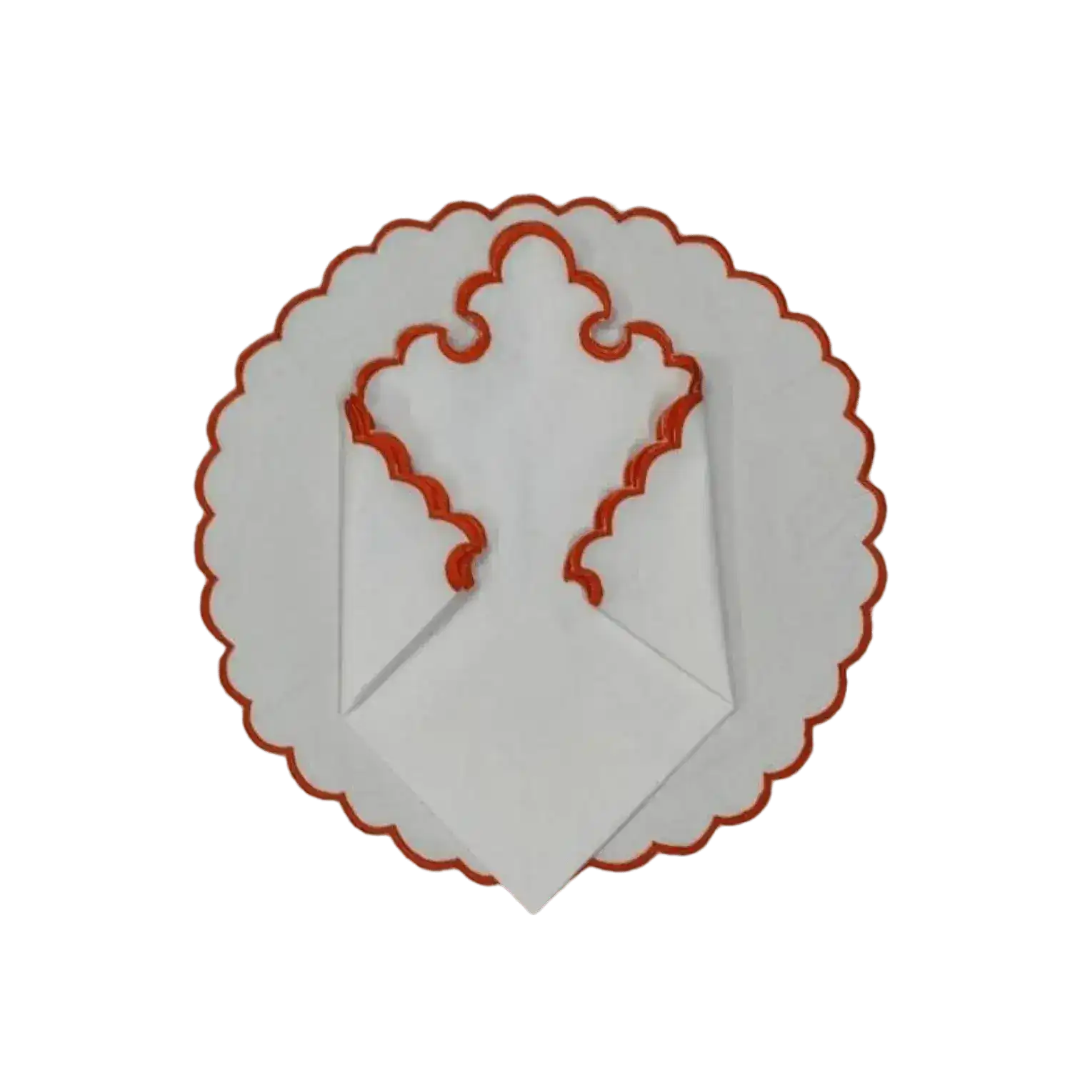 White Round Cotton Placemat and Napkin with Embroidered Border